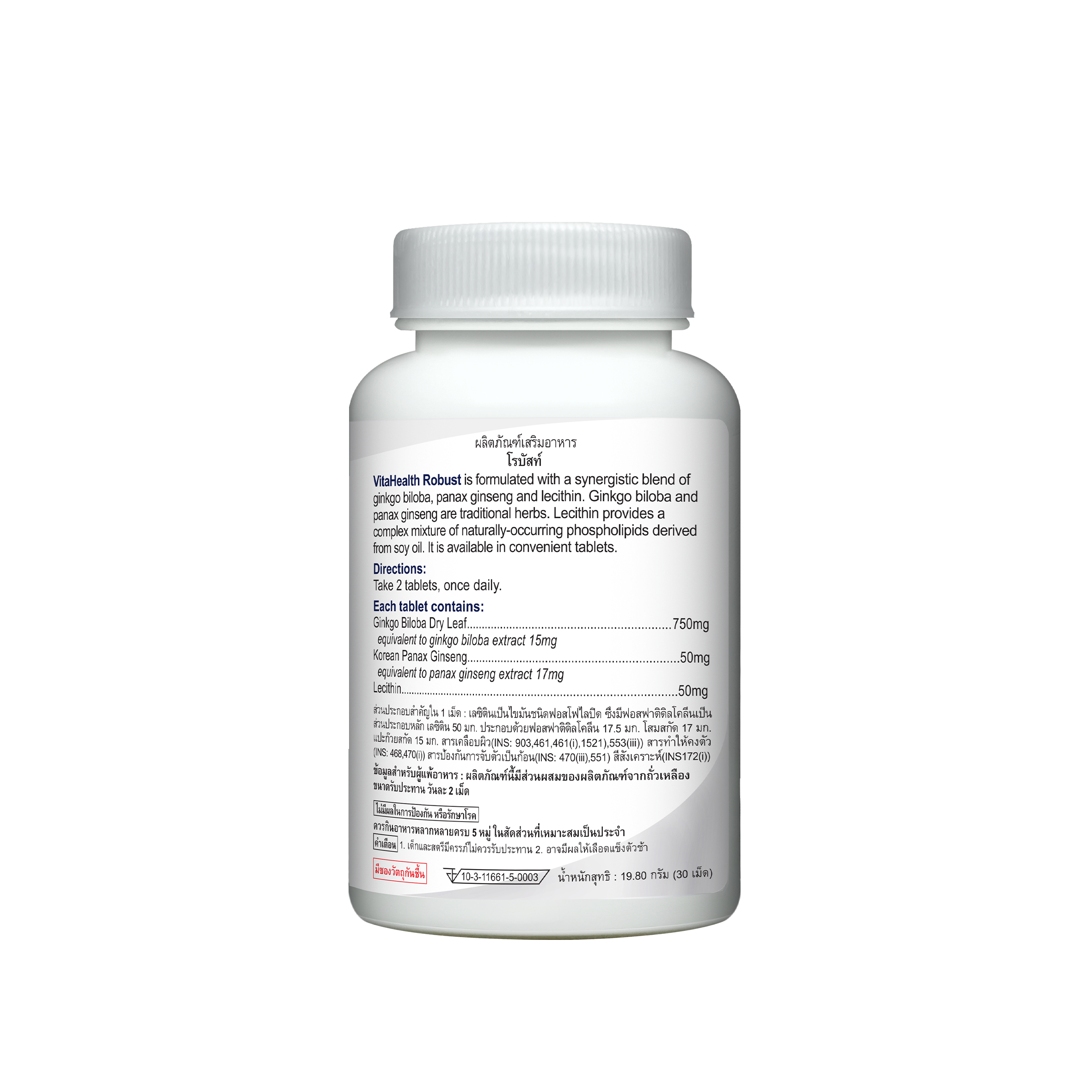 - ผลิตภัณฑ์เสริมอาหารที่มีส่วนประกอบของเลซิติน โสมสกัดมาตรฐาน และใบแปะก๊วยสกัดมาตรฐาน