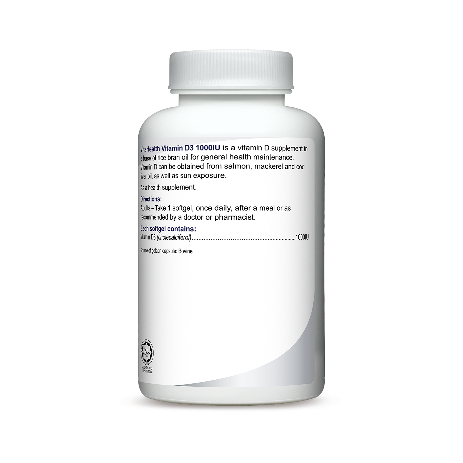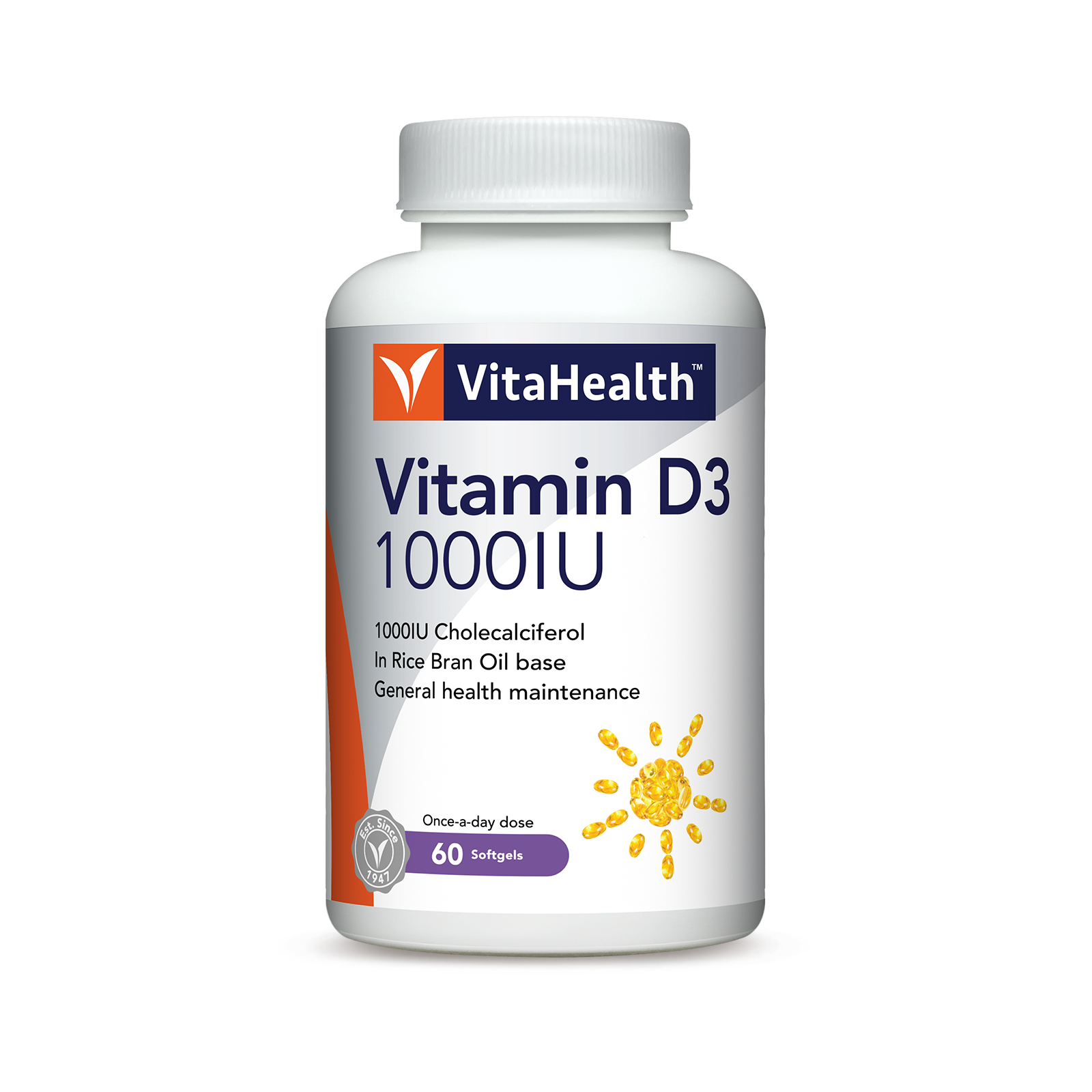 VitaHealth Vitamin D3 1000IU is formulated with high-strength vitamin D3 for the maintenance of bone health.