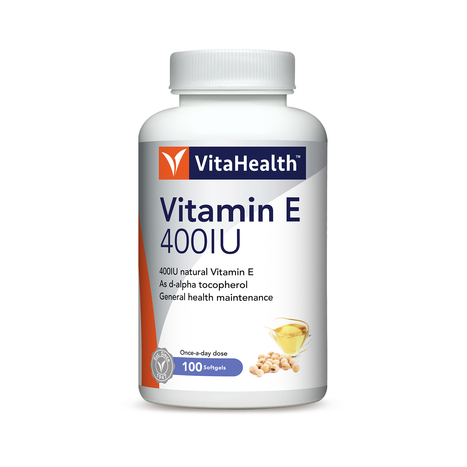 VitaHealth Vitamin E 400IU provides a natural source of vitamin E (d-alpha tocopherol) derived from soybean oil.